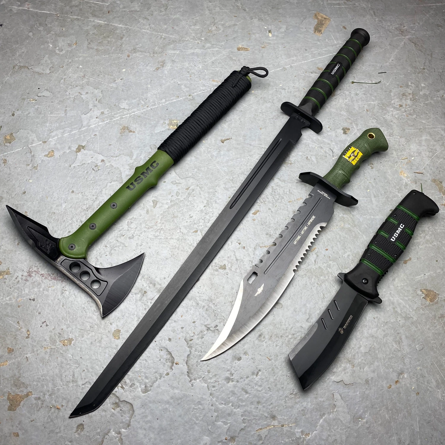 - The knives come housed in their own rugged nylon belt sheaths with “USMC” embroidered prominently on the front