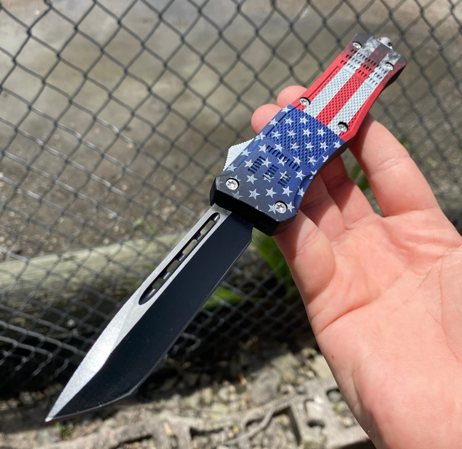 The Viper Tec Dual Action Out The Front Knife features a razor sharp Stainless Steel blade with a two tone matte black finish. The blade can be quickly deployed with the ambidextrous sliding button. Pushing forward on the button deploys the blade out the front of the handle and pressing backwards on the button retracts the blade back into the handle where it is ready again to be deployed at a moments notice. Comes with an ambidextrous pocket clip which can be easily changed to either side. Â